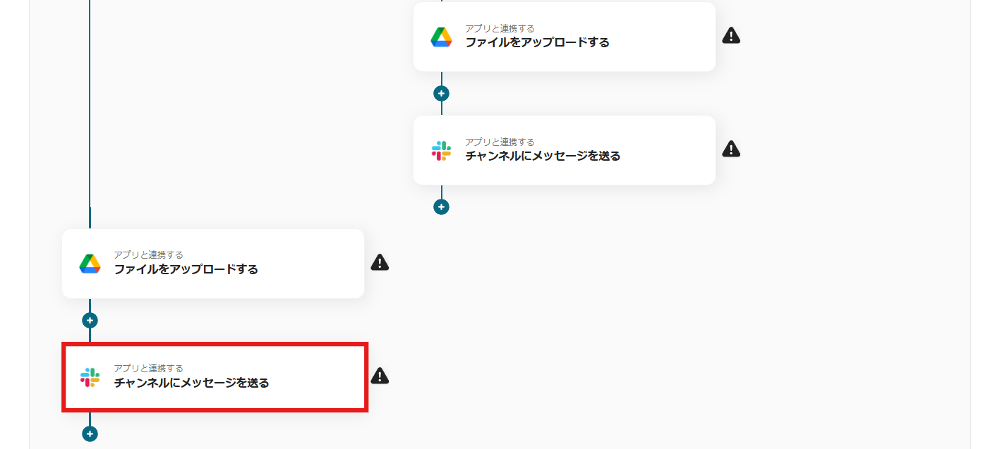 最後に、Google Driveに保存した後、Slackの特定のチャンネルにその旨を通知するフローを紹介します。