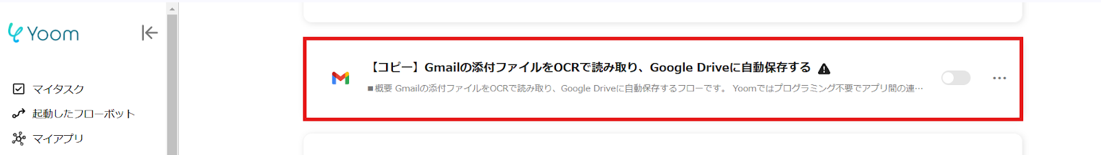 「【コピー】Gmailの添付ファイルをOCRで読み取り、Google Driveに自動保存する」をクリックします。