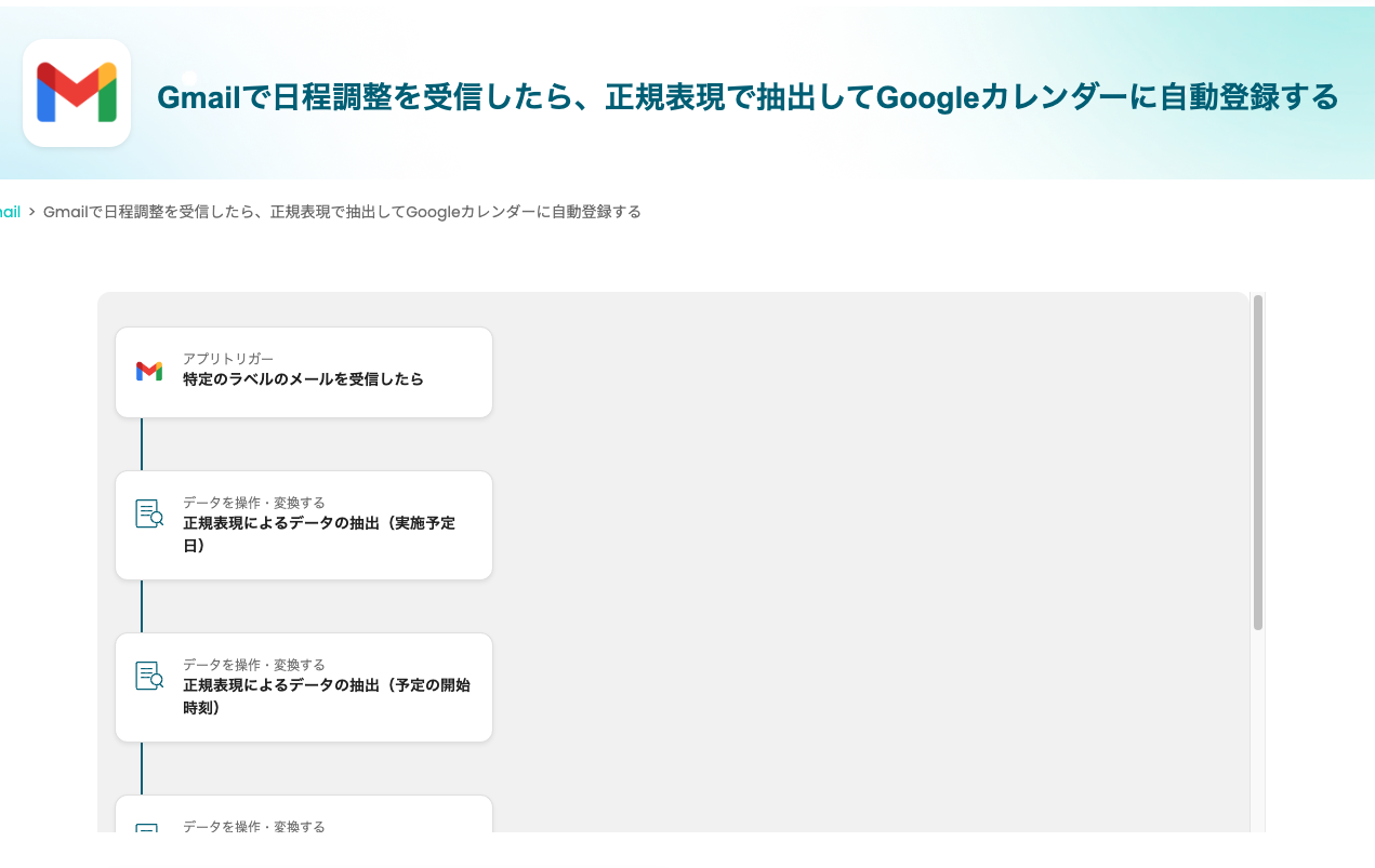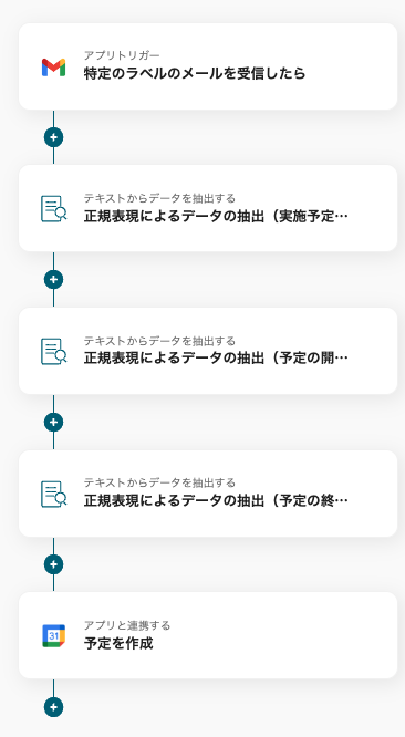 似た構成の自動化フローで、Gmailの本文を取得してGoogleカレンダーに予定を登録する自動化フローをご紹介します。