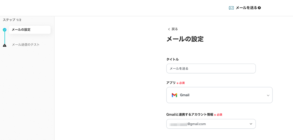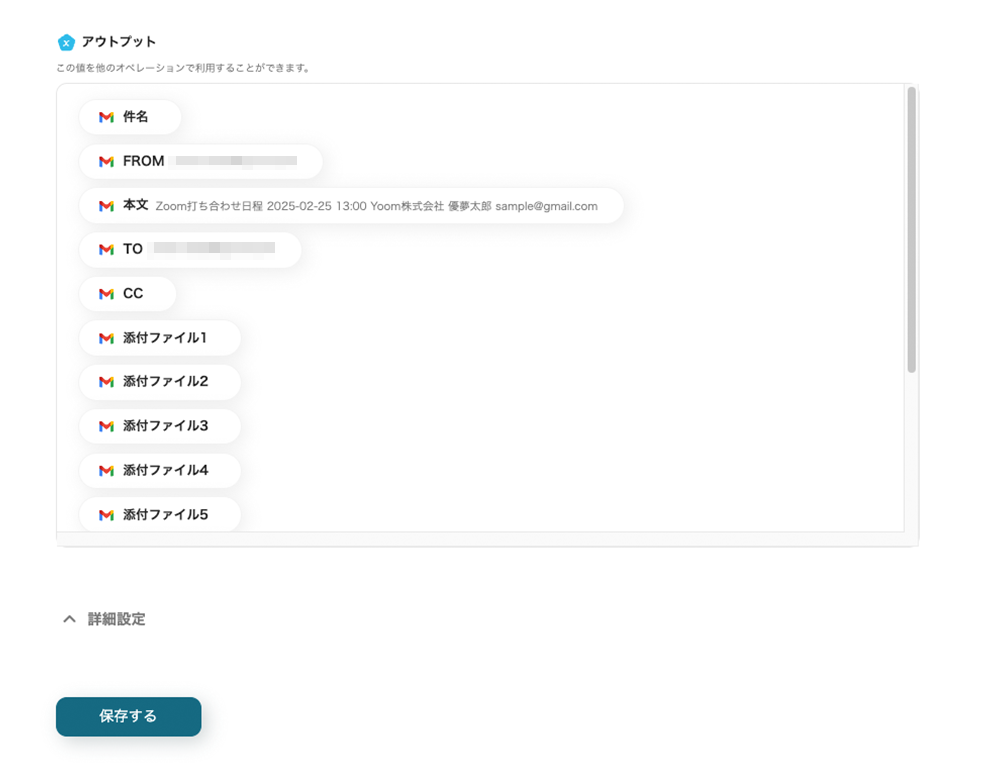 テンプレートの1つ目の工程をクリックします。Gmailに送信された情報を取得します。