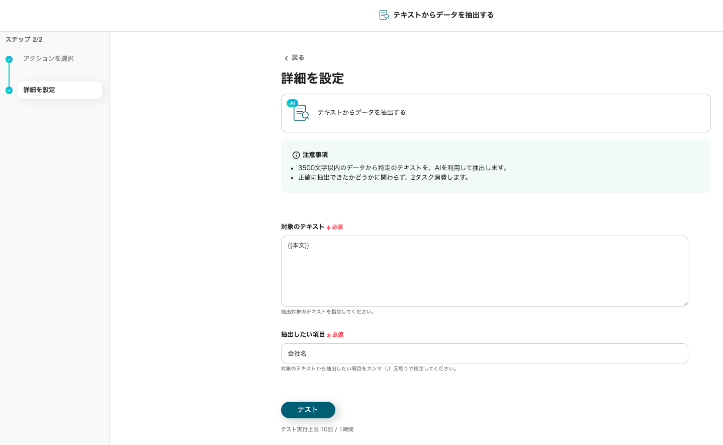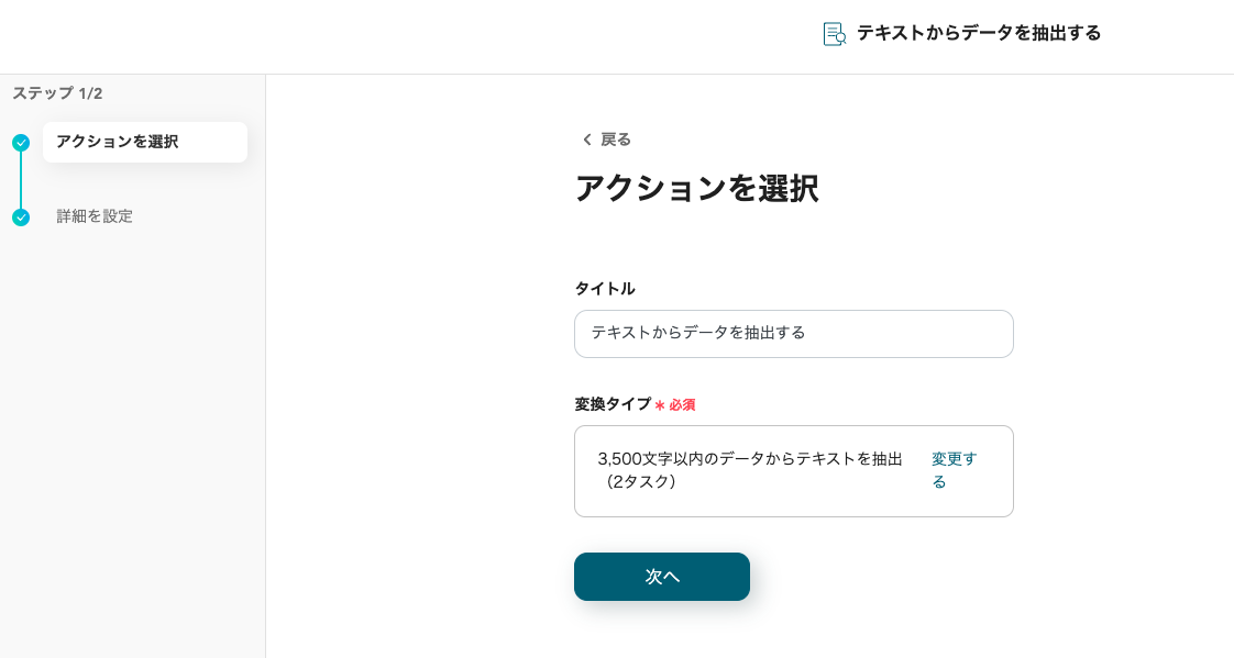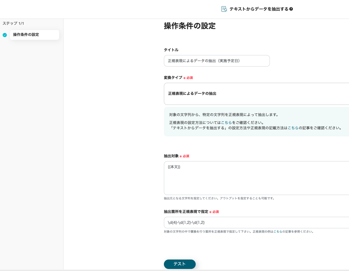 ステップ4:テキストからデータを抽出する「テキストからデータを抽出する」