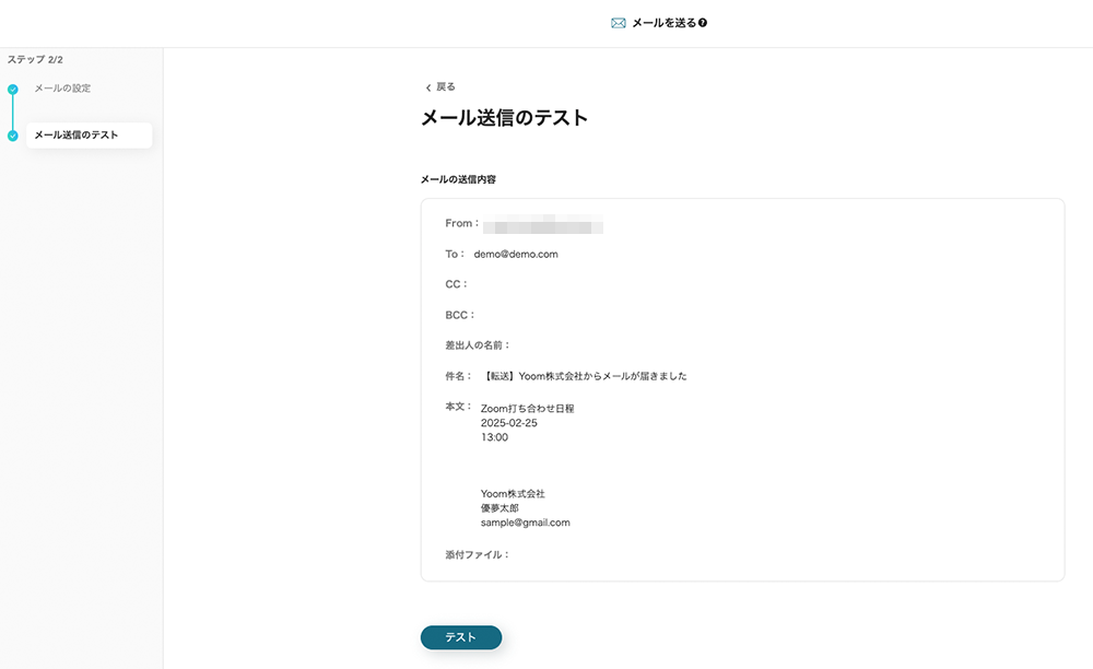 内容に問題がなかったらテスト送信を行いましょう。Gmailの振り分け先ごとに設定が終わったら、設定完了です。