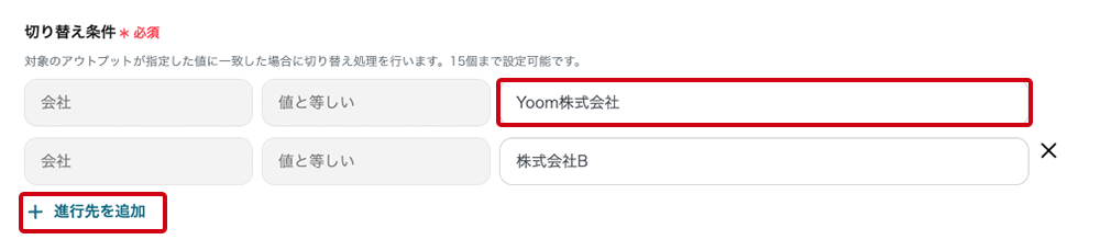 ちなみに、2パターン以上振り分けることも可能です。「+進行先を追加」ボタンをクリックすると新しく項目が追加できます。