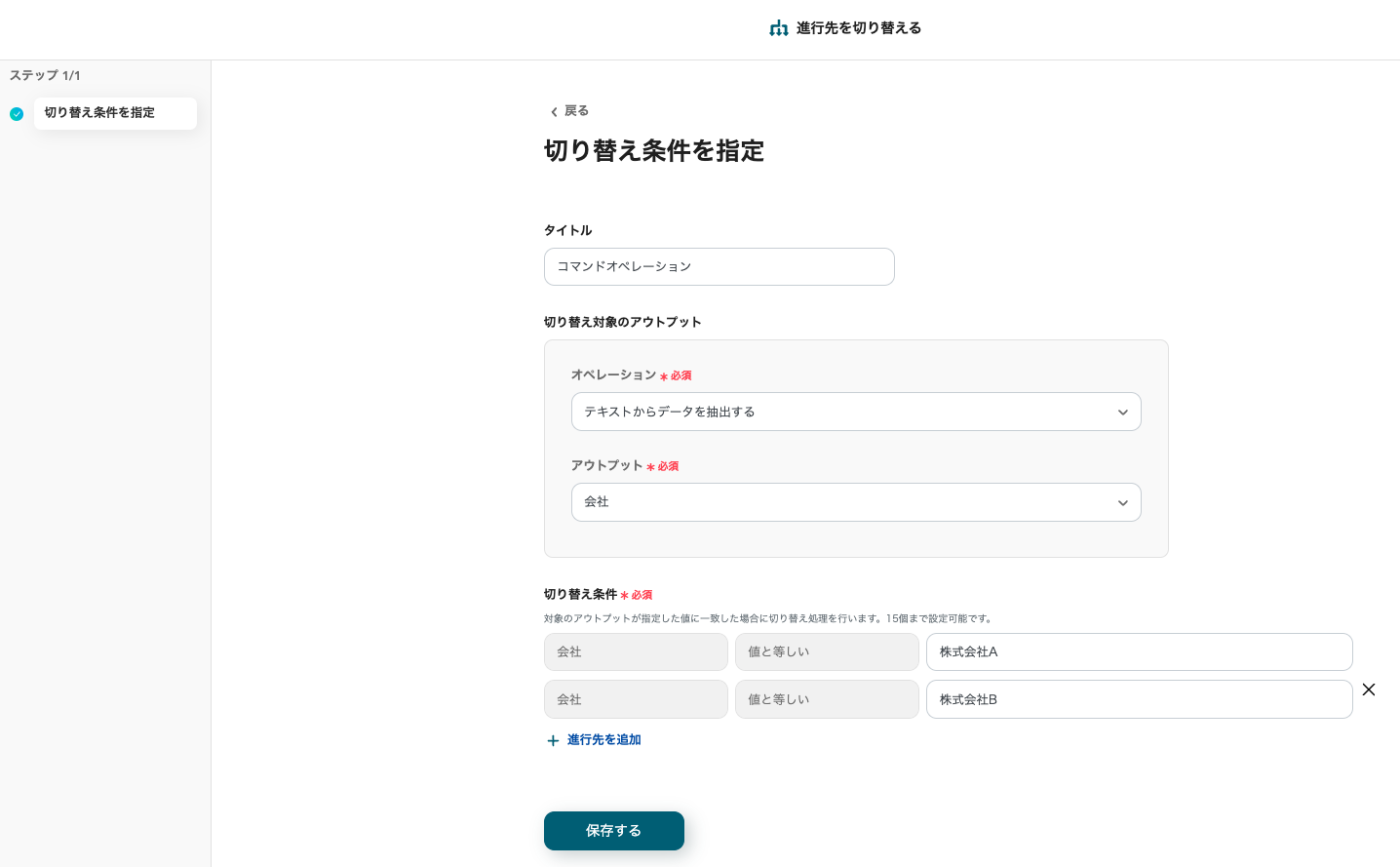 ・「進行先を切り替える」はミニプラン以上のプランでご利用いただける機能(オペレーション)となっております。フリープランの場合は設定しているフローボットのオペレーションはエラーとなりますので、ご注意ください。