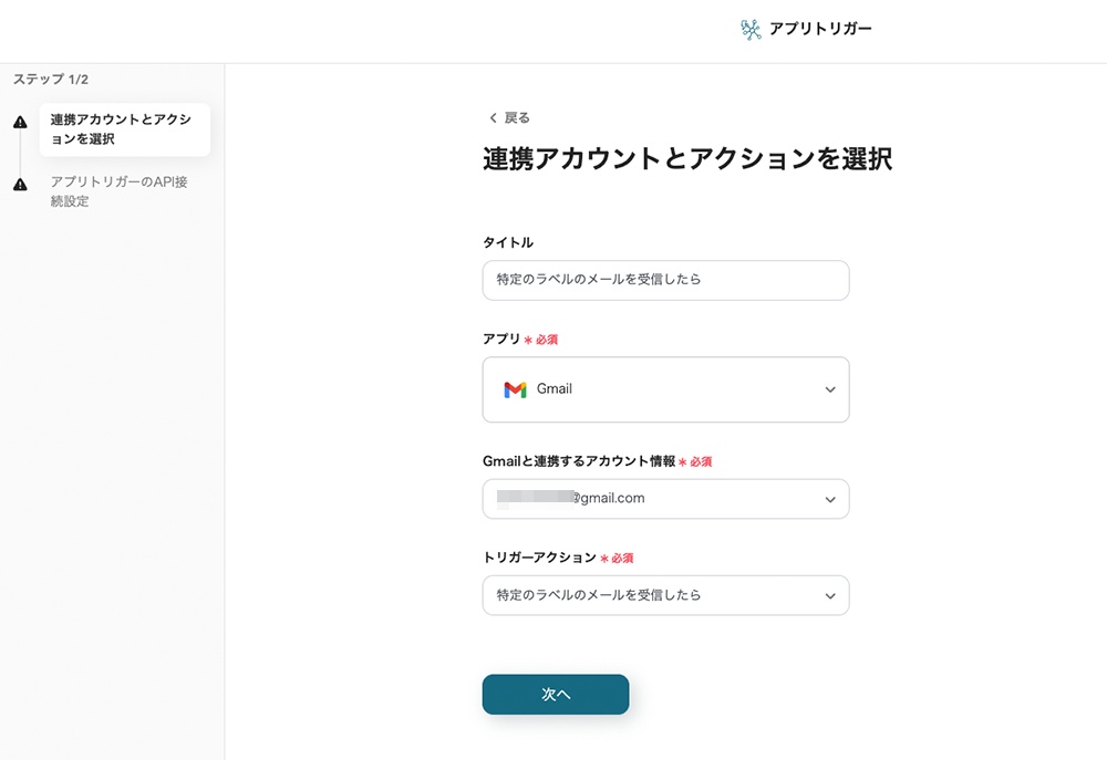 ステップ3:アプリトリガー「特定のラベルのメールを受信したら」