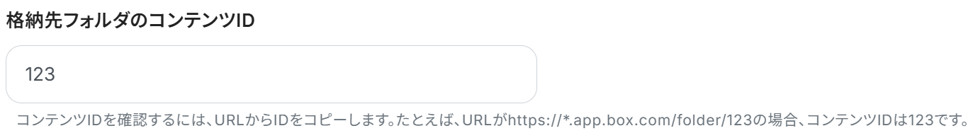 スクロールし、「格納先フォルダのコンテンツID」を設定してください。