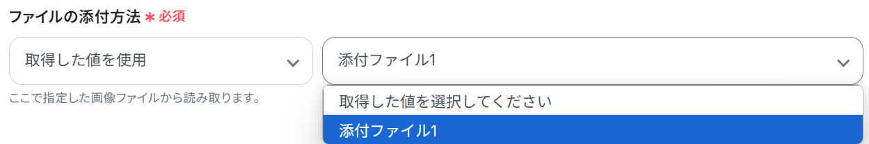 以下の画面が表示されたら、「ファイルの添付方法」を設定します。