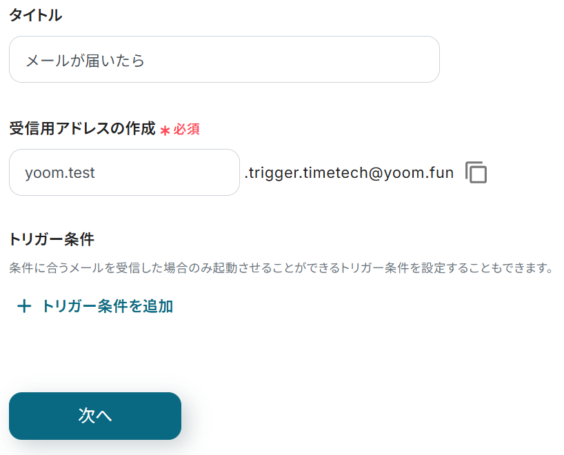 こちらでは、Gmailからメールを転送し、メールトリガーを起動する設定を行います。