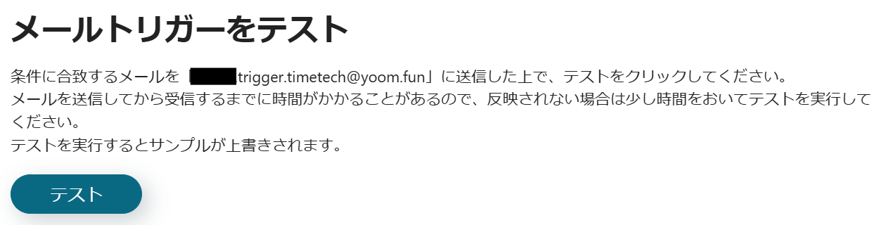 以下の画面が表示されるので、テスト用にGmailのアドレスに添付ファイル付きのメールを送信してください。