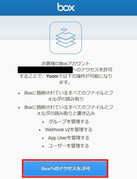 以下の画面が表示されたら、「Boxへのアクセスを許可」をクリックしましょう。