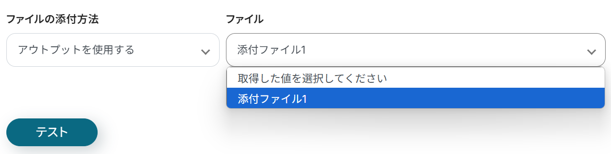 「添付ファイル1」、「アウトプットが空でない」