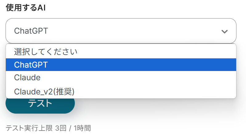 使用するAIを任意で選択しましょう。
