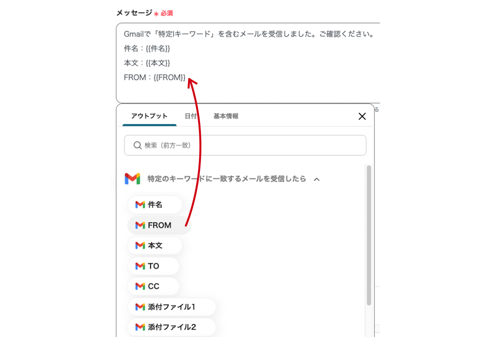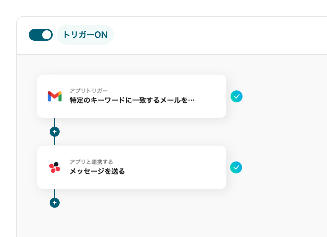 このフローボットでは、指定したキーワードが件名や本文に含まれるメールを検知し、GmailからChatworkに自動通知することが可能です。たとえば、「請求書」や「領収書」といったキーワードを登録すれば、関連する重要なメールだけを抽出し、効率よく対応できます。