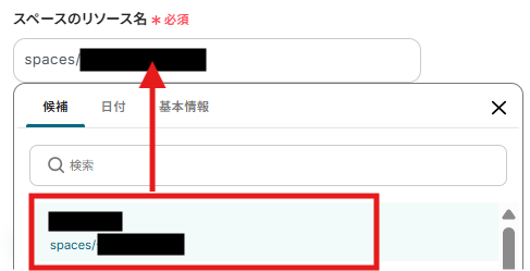 編集欄をクリックし、候補から対象のスペースを選んでください。