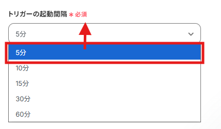 ・トリガーは5分、10分、15分、30分、60分の間隔で起動間隔を選択できます。