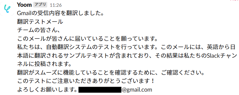 実際にフローボットを起動して、Gmailに英文メールを送信し、Slackに翻訳したメッセージが通知されるか確認してみてくださいね!