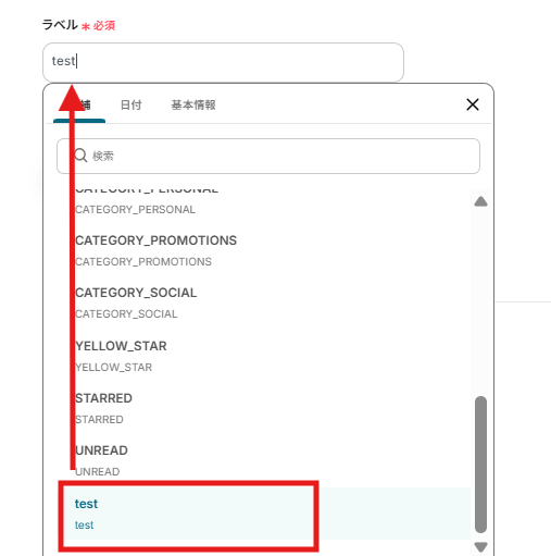 次にラベルを設定します。編集欄をクリックすると候補が表示されるので、メールの受信を検知したいラベルを選択しましょう。