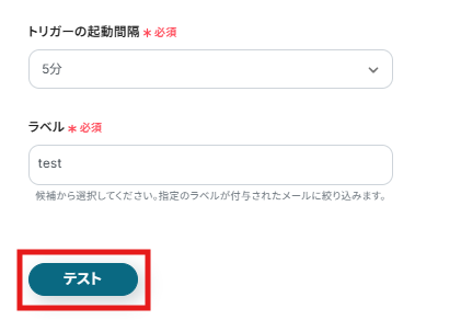 ここまでの入力が完了したら「テスト」をクリックします。