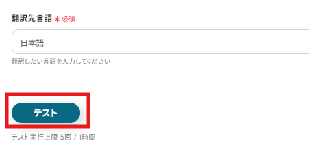 翻訳先言語は、今回英語の文章を日本語に翻訳するため「日本語」と入力します。