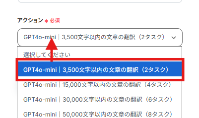 翻訳する際に使用するGPTの種類と、最大文字数を運用に合わせて任意で選択してください。