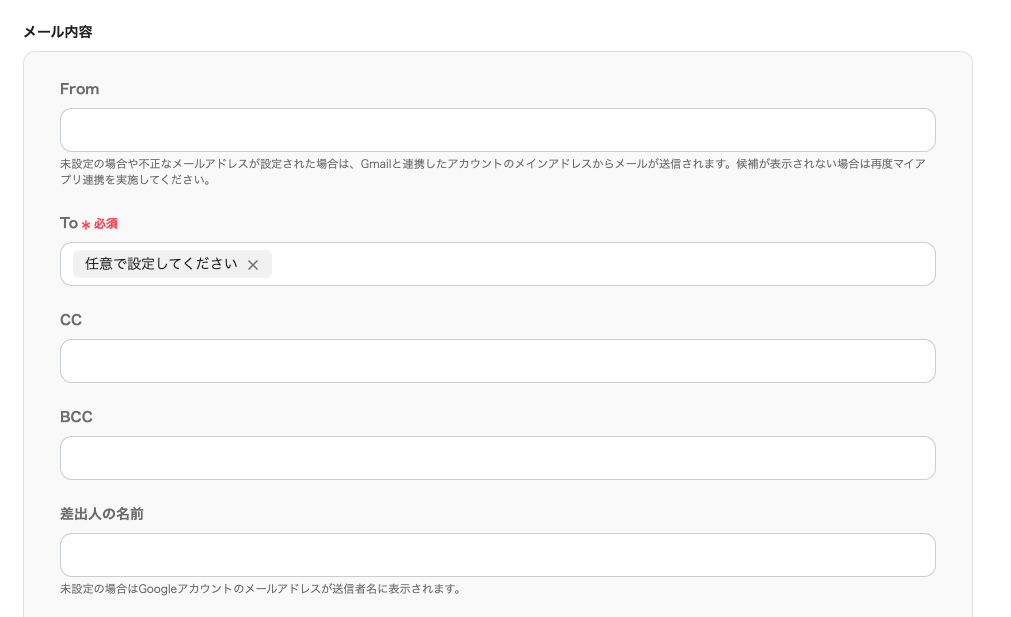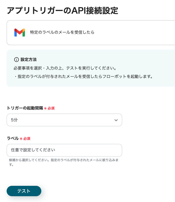 こちらではGmailの特定のラベルに届いたメールの情報を取得する設定を行います。