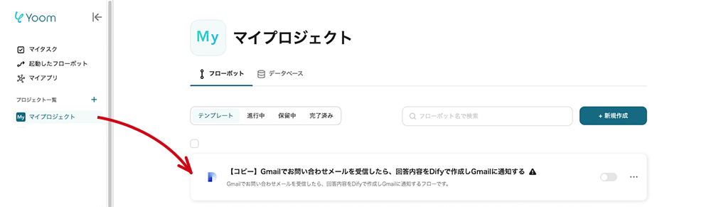 ステップ2 Yoomのフローボットテンプレートをマイプロジェクトへコピーする