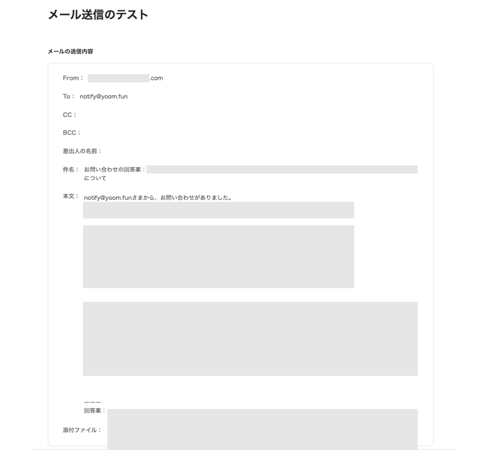 送信先を設定します。今回のフローでは、Difyの回答案を担当者に送信し、その回答案を基に担当者から顧客へ返信を行いますので宛先は【担当者のメールアドレス・またはメーリングリスト】を設定してください。