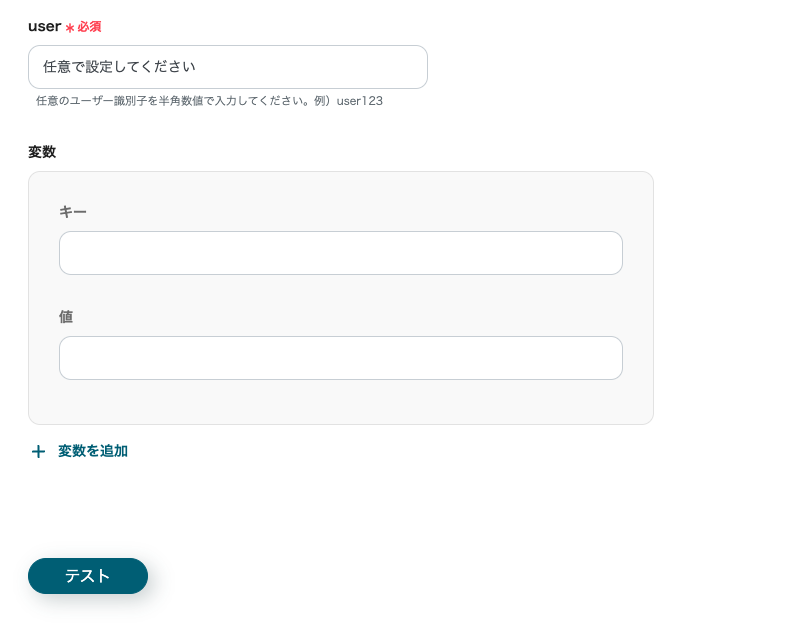 フォームの回答内容やDifyが生成した文章を変数として埋め込むことも可能です。