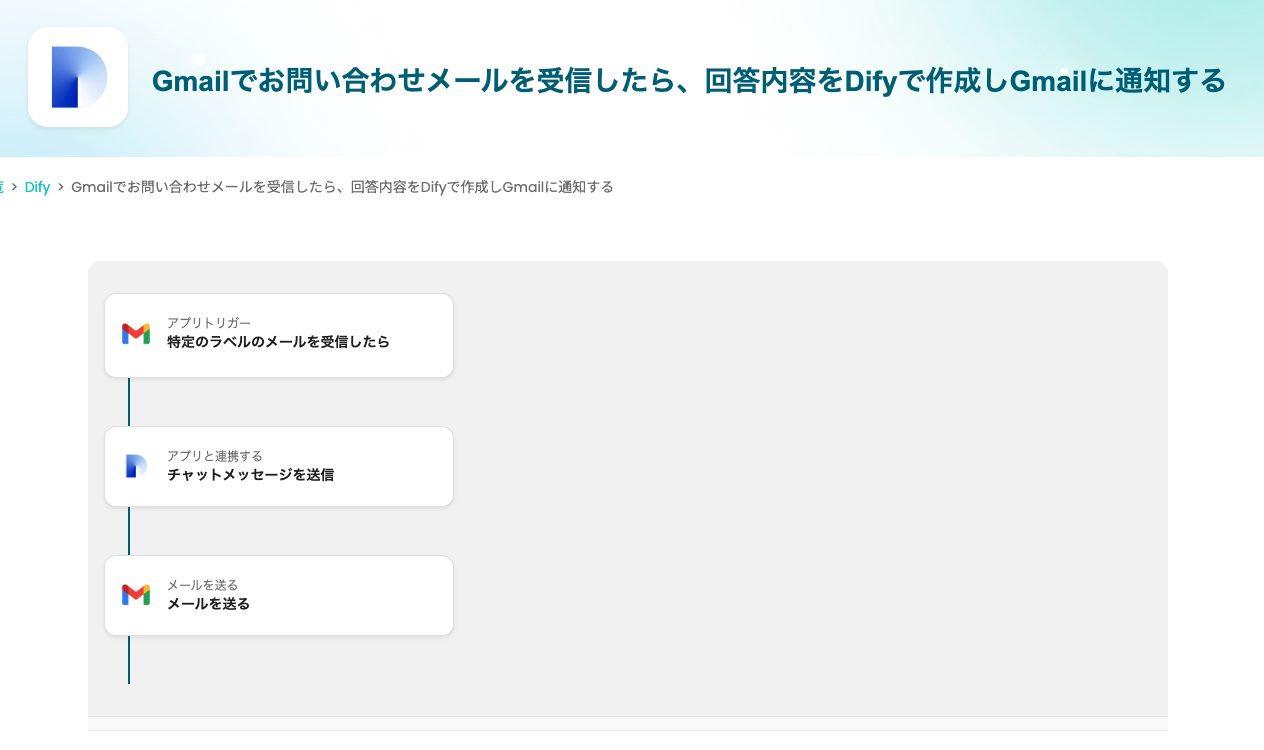 Gmailでお問い合わせメールを受信したら、回答案をDifyで生成し、Gmail(担当者宛)に送信する方法