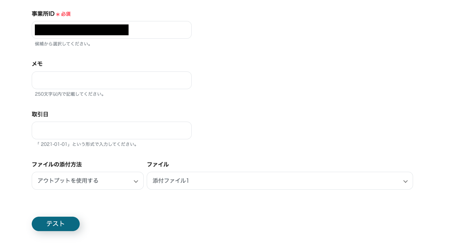 次の画面で「事業所ID」や「発生日」などの項目に情報を入力します。