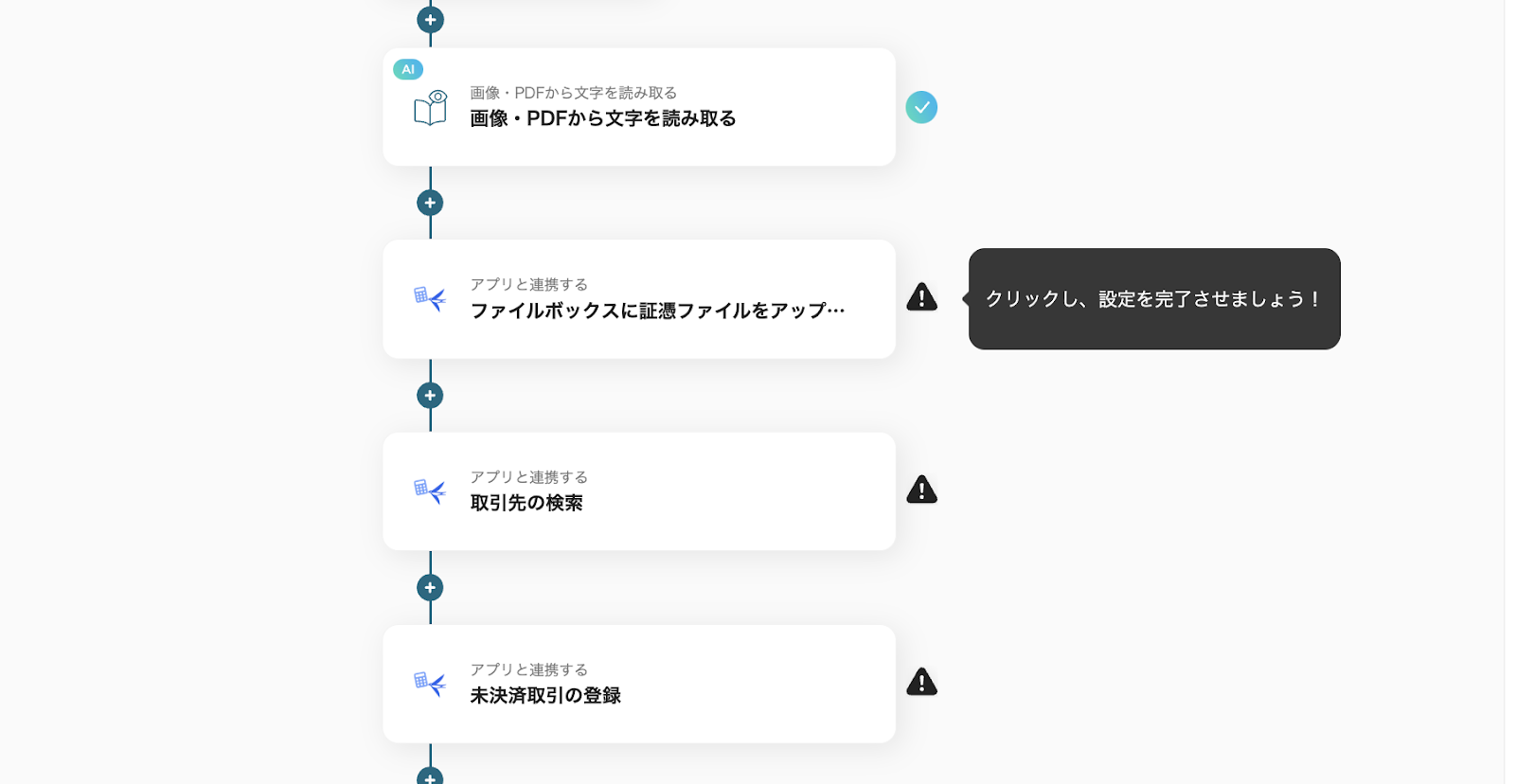 ・「画像・PDFから文字を読み取る」オペレーションはチームプラン・サクセスプランでのみご利用いただける機能となっております。フリープラン・ミニプランの場合は設定しているフローボットのオペレーションはエラーとなりますので、ご注意ください。