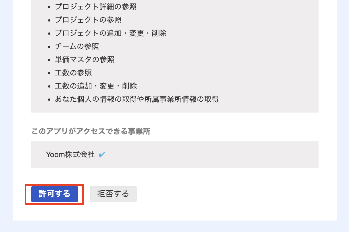 (5)アプリ連携を開始する画面に移行するので、下にスクロールして[許可する]をクリックします。