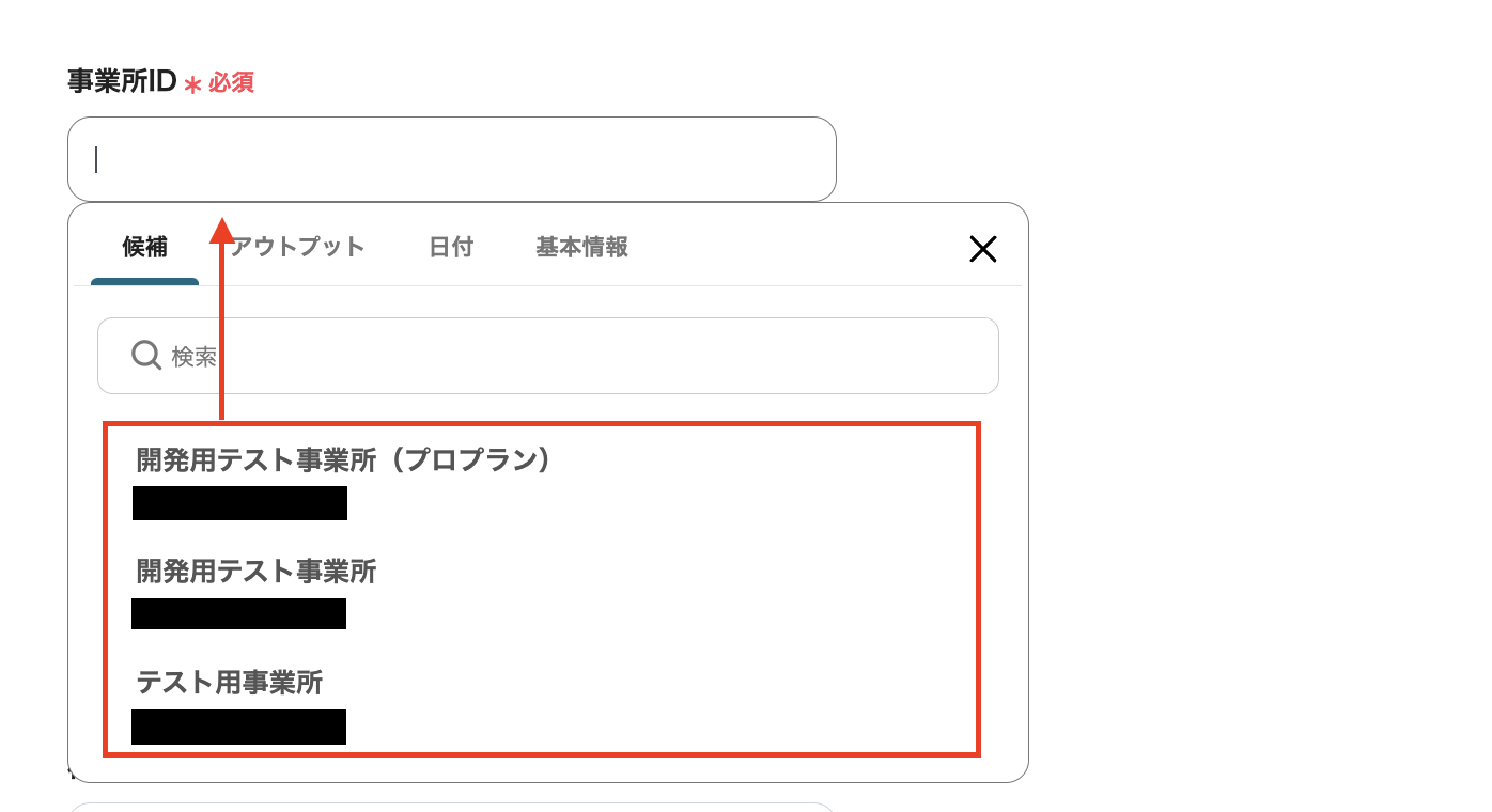 入力バーをクリックすると、前ステップで取得したアウトプットを引用できます。