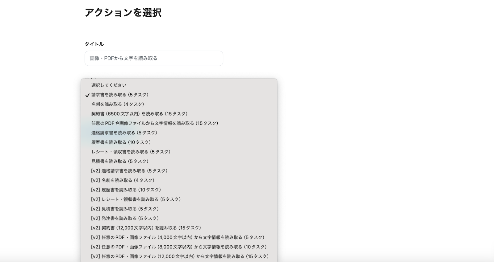 今回は『請求書を読み取る(5タスク)』を選択して、[次へ]をクリックしてください。