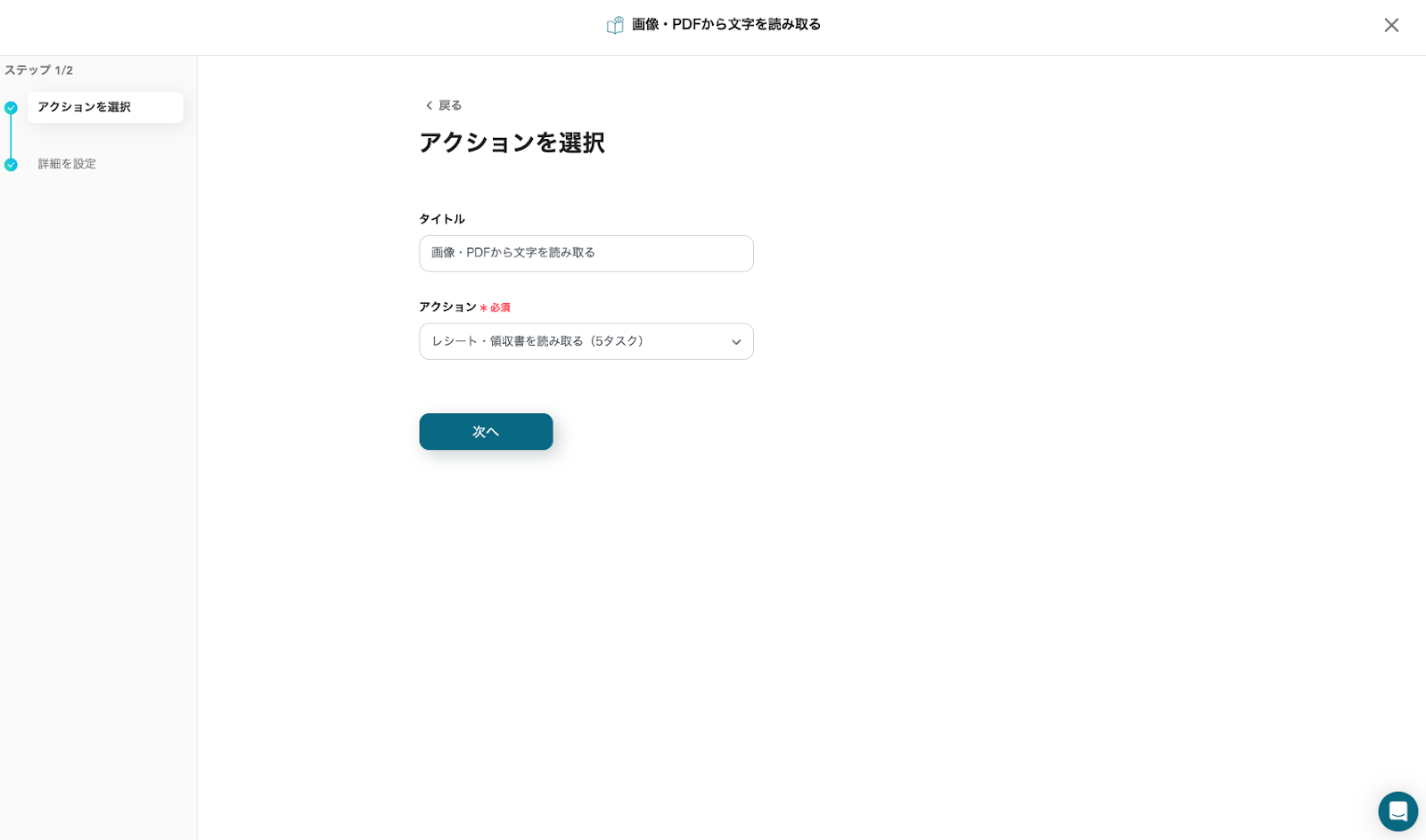 「アクション」は、デフォルトで「レシート・領収書を読み取る(5タスク)」が選択されています。