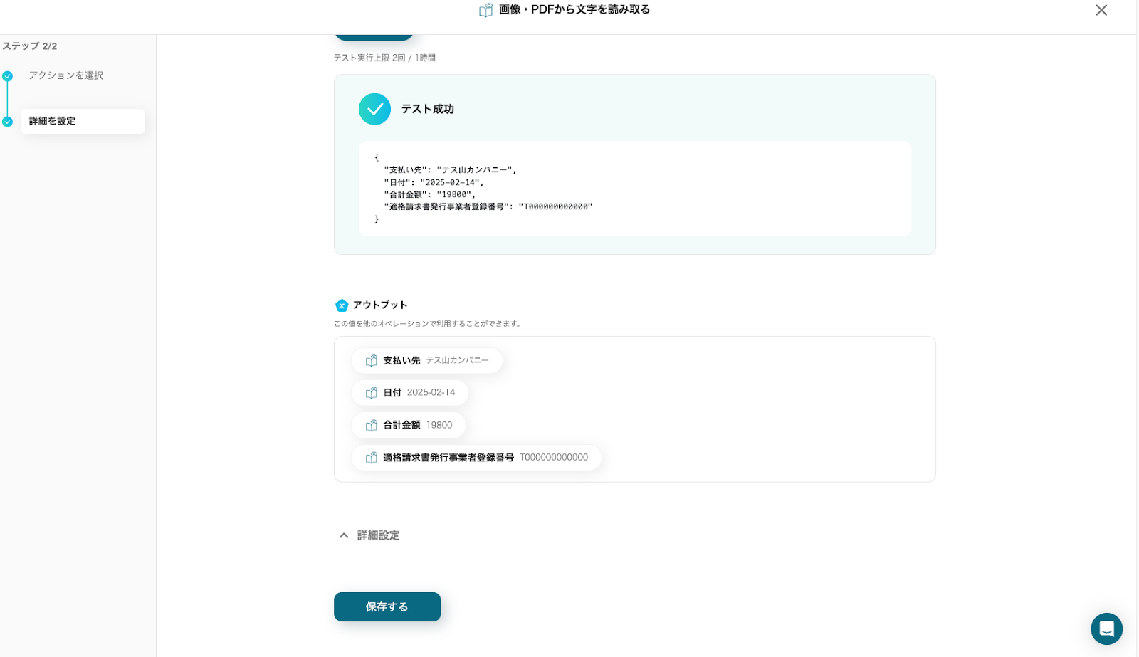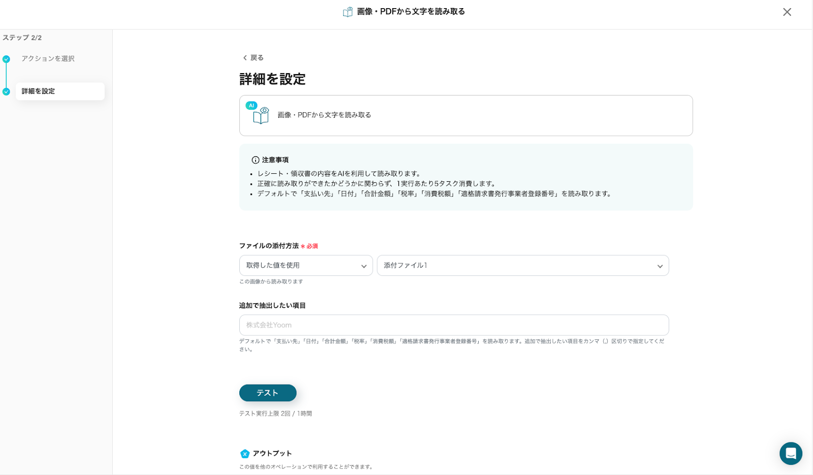 次に、添付ファイルをOCRで読み取る設定を行います。
