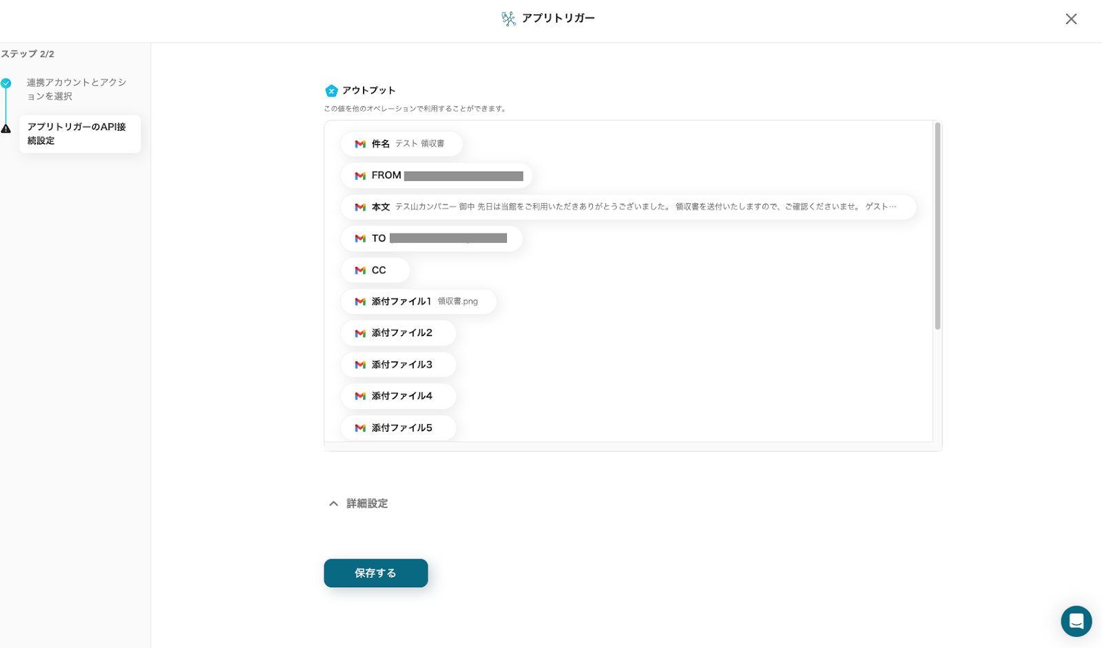 設定が完了したら、テスト用に領収書が添付されたメールを受信してください。