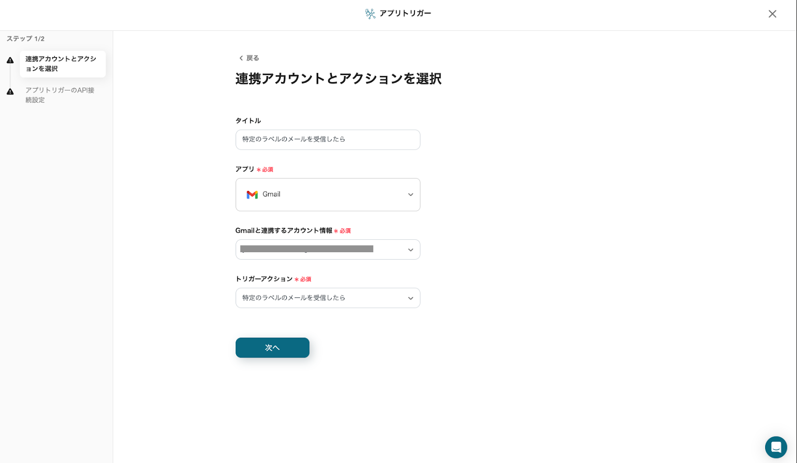 タイトルは編集可能ですが、トリガーアクションは変更せず「次へ」をクリックしてください。