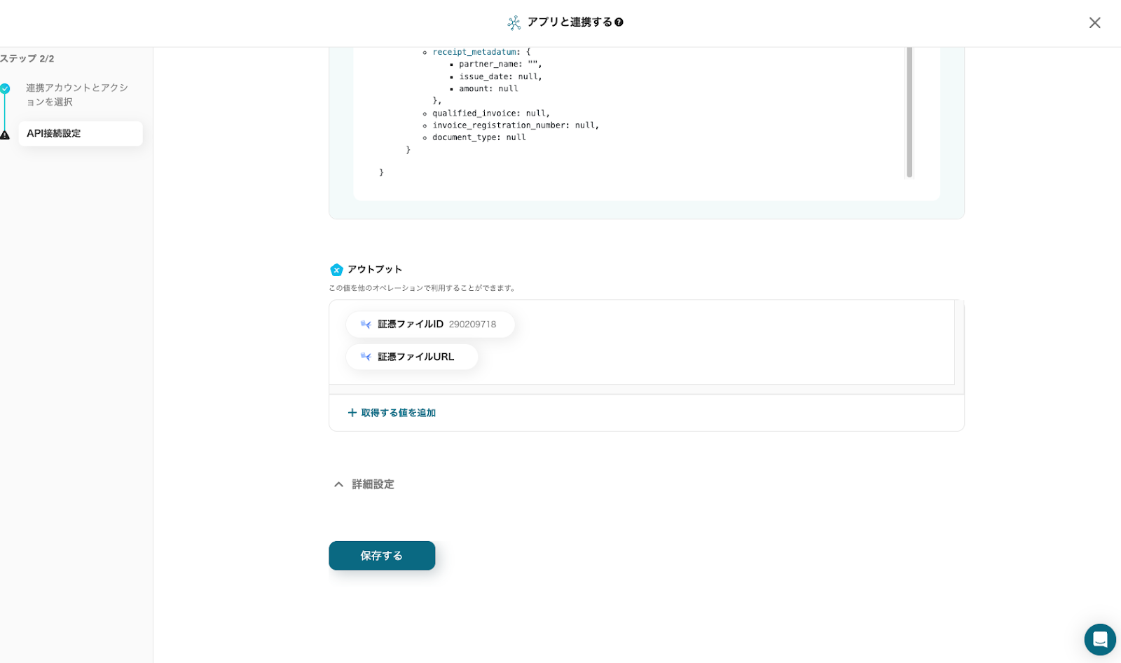 freee会計とアウトプットを確認し、「保存する」をクリックしてください。