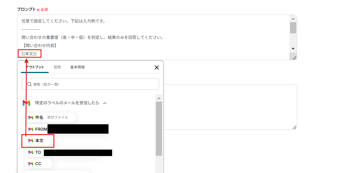 例えばYoomでは、Geminiに対して「あなたは●●担当として、Gmailのメールを振り分けるアシスタントです。●●の文言が入っている場合は重要度を上げてください」など指示できます。