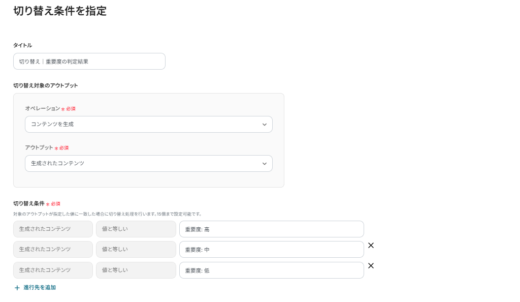 ・「進行先を切り替える」はミニプラン以上のプランでご利用いただける機能(オペレーション)となっております。フリープランの場合は設定しているフローボットのオペレーションはエラーとなりますので、ご注意ください。