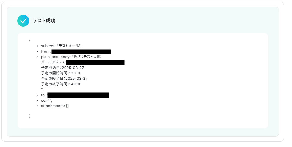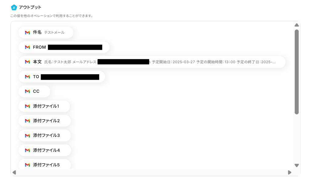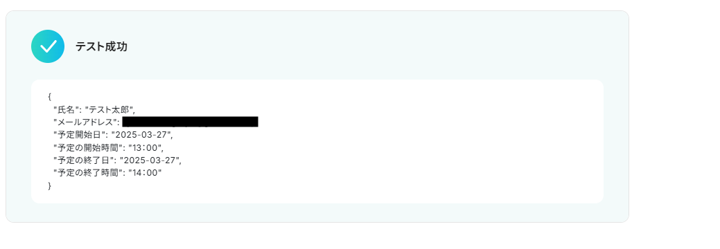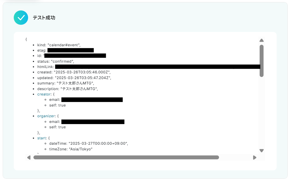 以下のアウトプットをこの後の設定時に引用することで、GmailとGoogle カレンダーのデータ連携を実現していきます!