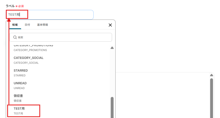 「ラベル」は、候補から選択してください。