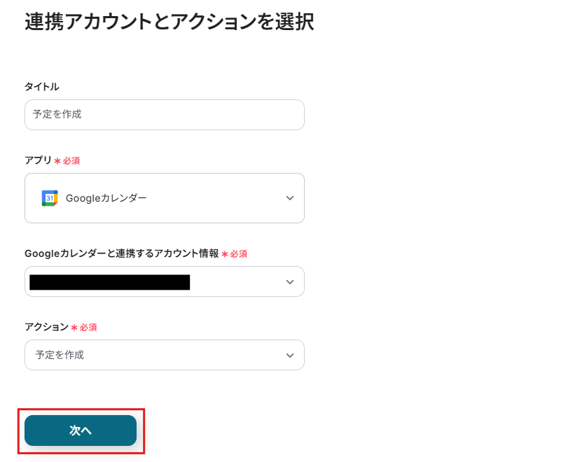 ステップ5:予定を作成する設定