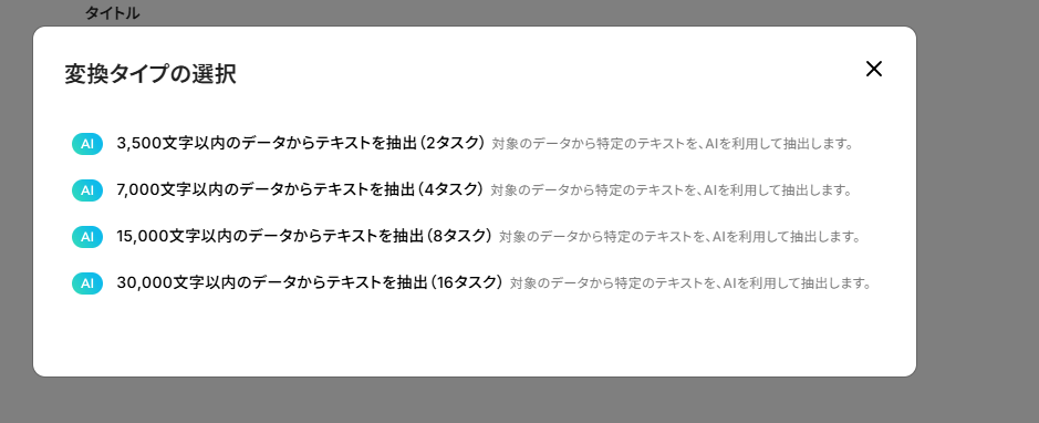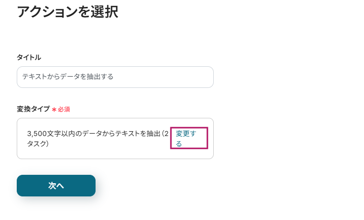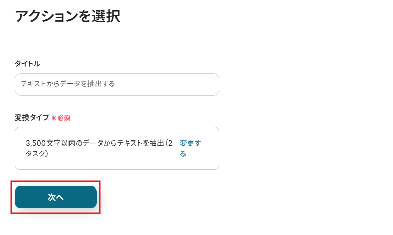 今回は3,500文字以内のデータからテキストを抽出で設定します。