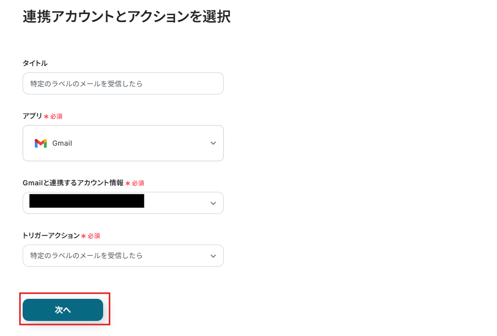 「特定のラベルのメールを受信したら」をクリックしてください。