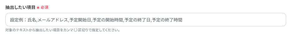 抽出したい項目は以下設定例を参考に入力してください。