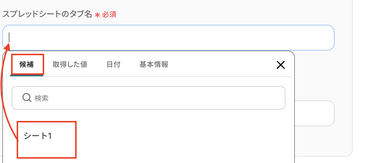 スプレッドシートのタブ名は候補から選択してください。