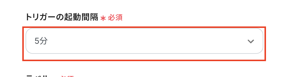 トリガーの起動間隔を設定しましょう。 トリガーの起動タイミングは、5分、10分、15分、30分、60分のいずれかで設定できます。ご利用プラン によって、設定できるトリガーの最短間隔が違うので、その点は要チェックです。 基本的にはそのプランの最短の起動間隔にしてお使いいただくことをおすすめします。