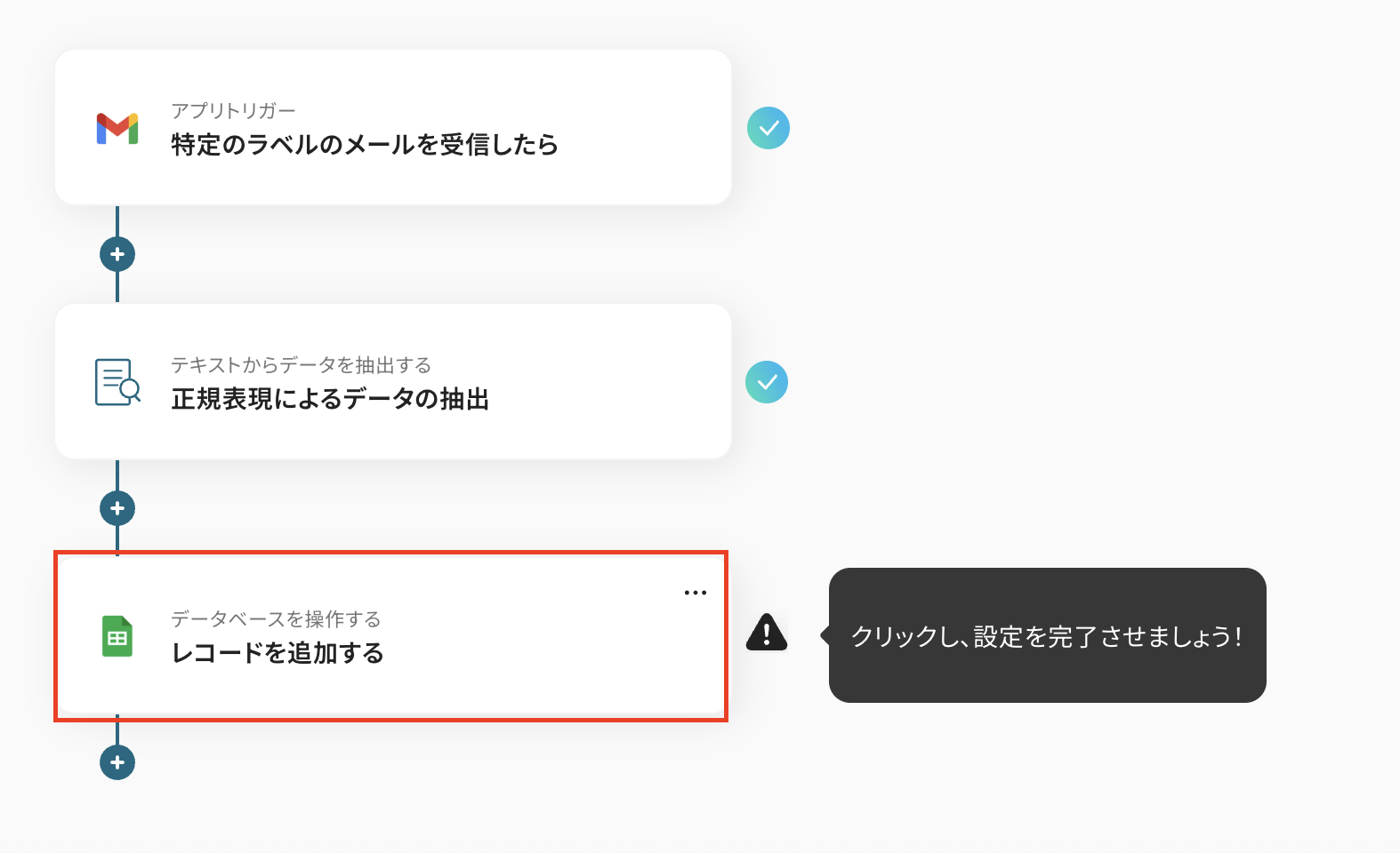 今回は「Gmailの内容をGoogle スプレッドシートに抽出・追加する」フローボットを作成していきます! 作成の流れは大きく分けて以下です。